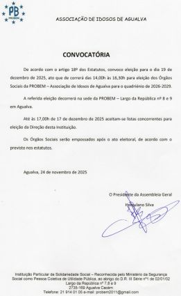 Convocatória para a Assembleia Geral para aprovação do Orçamento Previsional e Relatório de Atividades para 2026 19-10-2025
